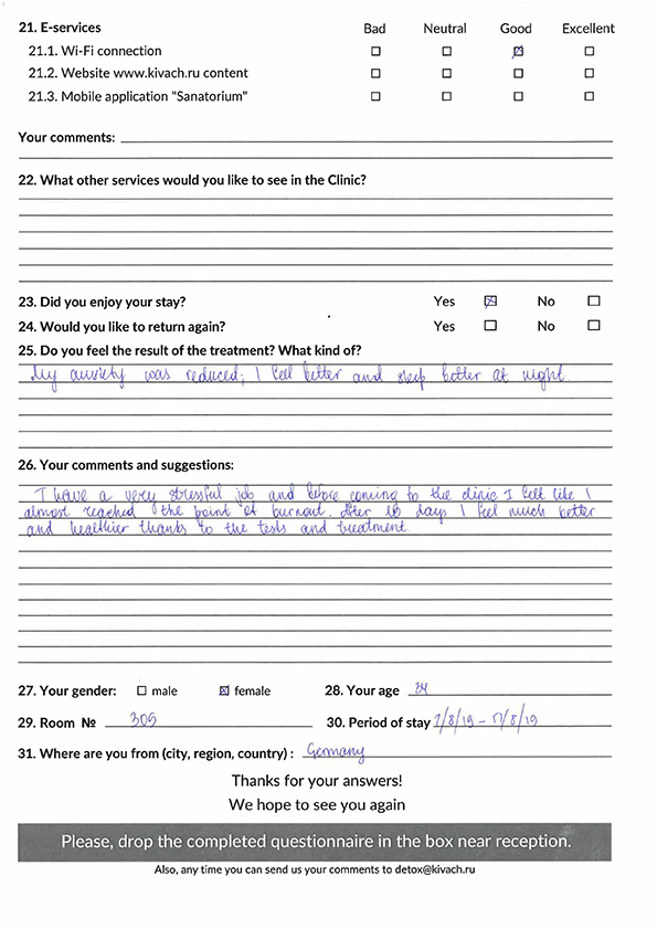 - allows the patient to reduce the pace of life for the period of the program, enter a contemplative state, relax from daily hustle and bustle;