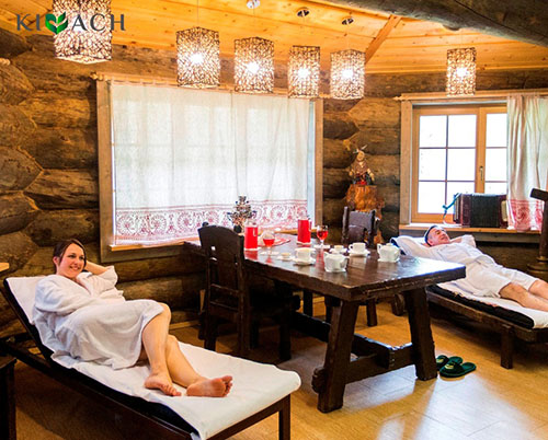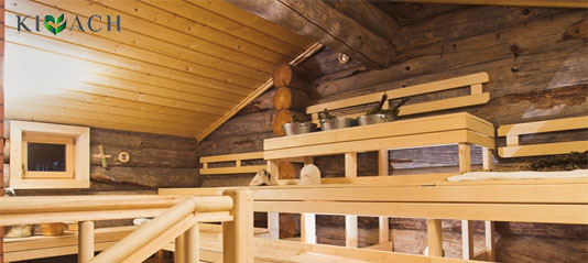 Karelian bathhouse of the clinic is located in a separate building, created in log house style. Karelian coniferous deadwood was chosen for its construction. Those are several hundred years old trees grown in ecologically clean environment and then dried on their roots. To maintain the natural quality of the selected wood, all processing in the form of impregnation, application of antiseptics, coloring, etc has been excluded. Such trees provide an optimal balance of oxygen and humidity in the room.